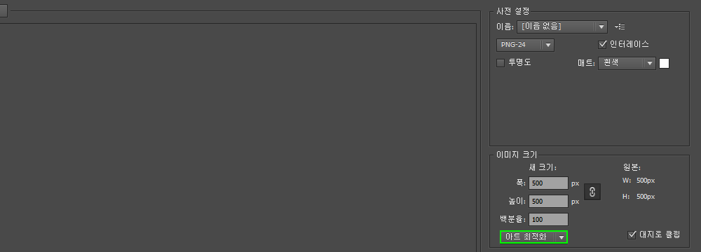 위의 이미지와 같이 어도비 일러스트로 이미지 작업을 하고 이미지로 저장을 할 때, 이미지 크기 섹션에서 안티 앨리어싱을 설정해줄 수 있다. 아트 최적화는 이미지를 부드럽게 만들고, 문자 최적화는 글자를 선명하게 만든다. 직접 이미지를 저장할 때, 글씨가 있는 이미지를 저장한다면 위의 옵션을 변경하면 큰 차이를 느낄 수 있을 것이다.
