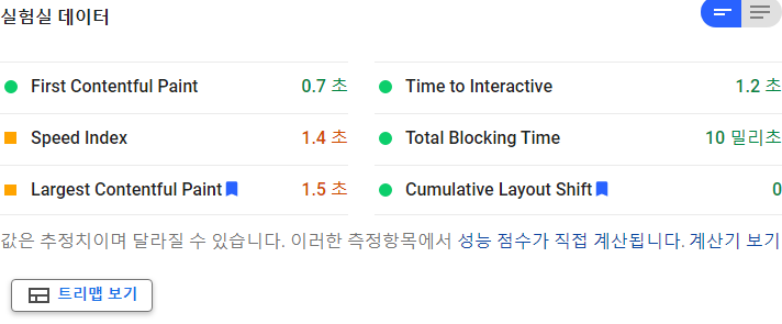 위의 값은 데모사이트가 아닌 실제로 많은 콘텐츠가 작성된 블로그에 적용된 데이터입니다. 다만, 광고 배너의 갯수, 위치 등 여러 요소들에 의해 조금씩 속도가 달라질 수 있습니다.