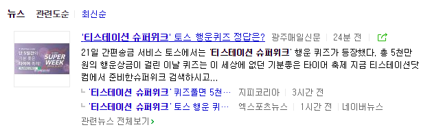 어쨌든, 이벤트를 하는 것은 좋은데, 꼭 토스 행운퀴즈가 항상 있으니 급상승 검색어가 무슨 의미가 있는지 모르겠다. 거의 매일 낮시간에는 토스 행운 퀴즈 이벤트가 실시간 검색어를 도배하고 있다. 이것은 분명 네이버 자체가 문제가 있는 것이라고 생각이 든다. 네이버는 모든 부분이 광고판이 되어 버린 것이 아닐까 싶다.