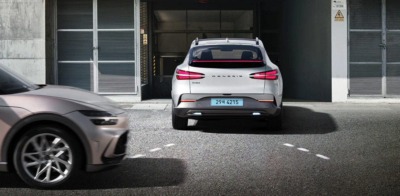 GV60은 안전한 주행 환경을 제공하기 위해 여러 기능을 갖추고 있습니다. 후방 교차 충돌 방지 보조(RCCA)는 후진 시 좌우에서 다가오는 차량과의 충돌 가능성을 감지하고 경고를 제공합니다. 또한, 차량이 후진할 때 LED 가이드 램프에서 도로로 빛을 비추는 후방 가이드 램프 기능이 있어 다른 차량이나 보행자에게 경고하여 사고 위험을 최소화합니다.