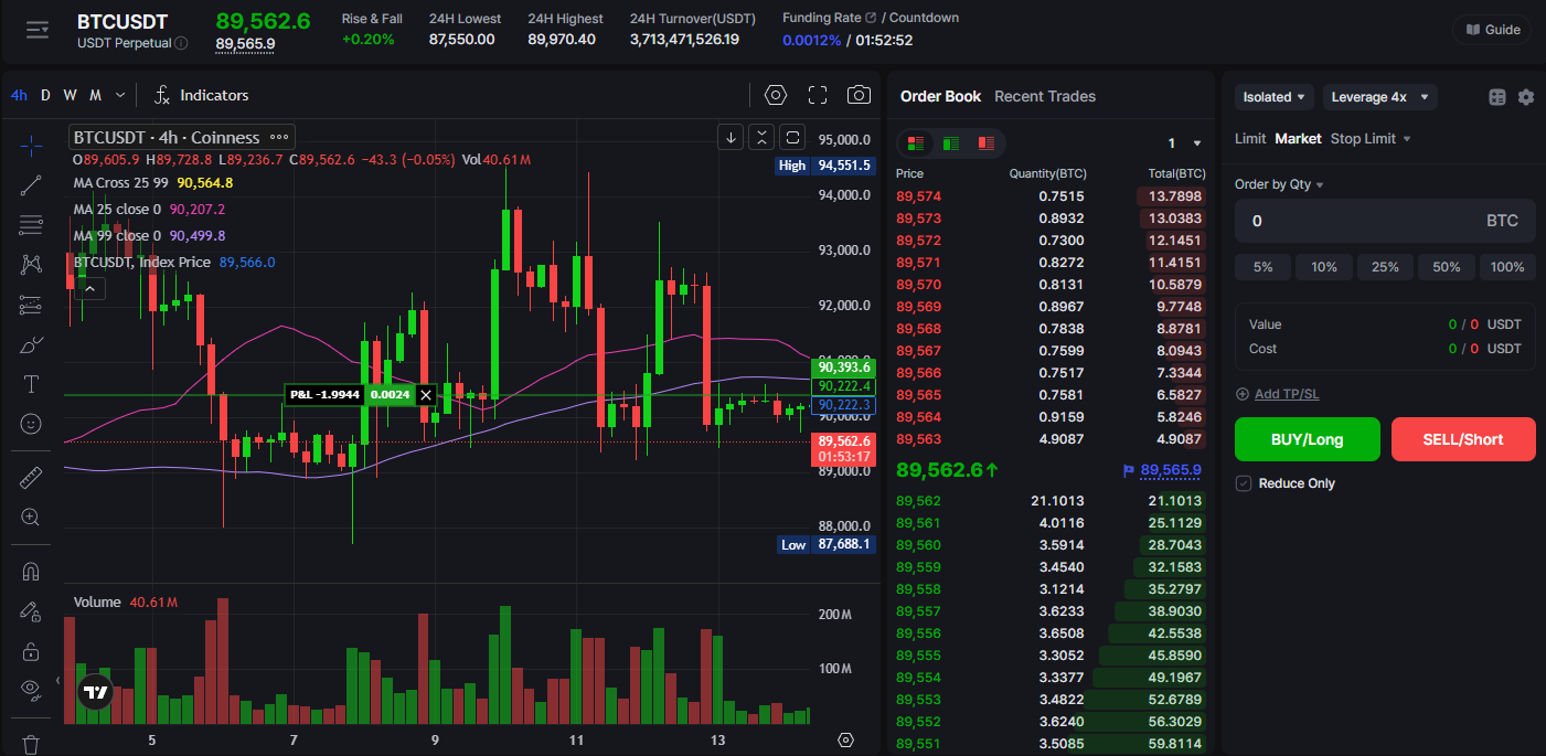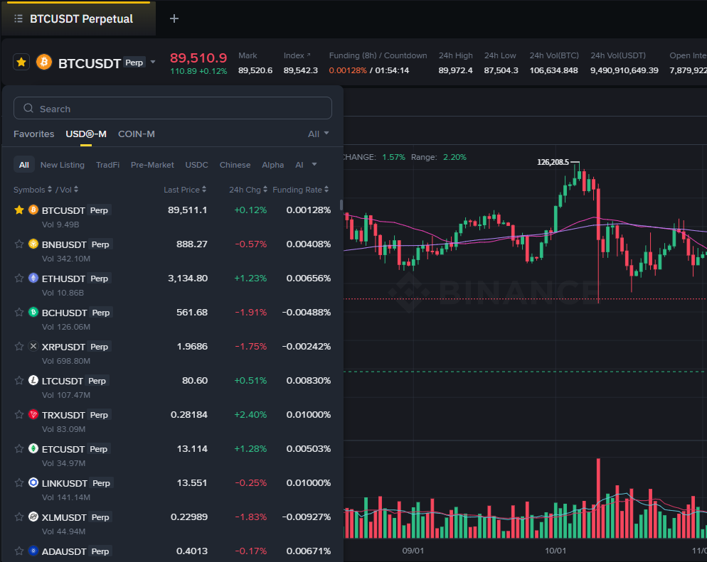 - 거래 페어 선택: 바이낸스 선물 시장에서 BTCUSDT 무기한 선물 계약을 선택합니다.