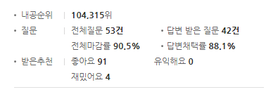심지어 다른 계정의 네이버 지식인 프로필을 확인했더니, 무려 영웅 등급이었다. 정말 열심히 답변을 달았구나 싶었다. 계정을 모두 합치면 생각보다 정말 많은 답변을 달았었고, 의외로 네이버 지식인을 통해서 질문도 많이 하고, 또 답변도 많이 했었던 것 같다.