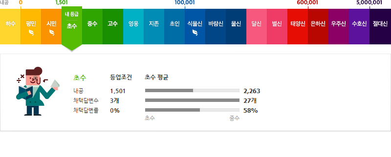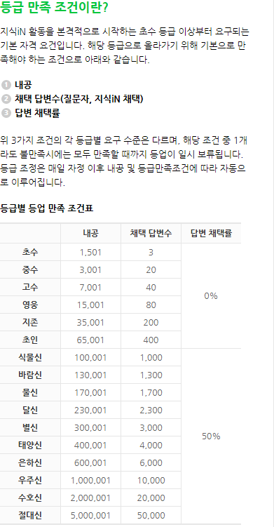 네이버 지식인에서 등급을 하기 위해서는 내공보다 어쩌면 중요한 것이 바로 채택 답변수다. 그만큼 많은 사람들에게 좋은 답변을 해줘야 한다는 것이다. 채택 답변수가 식물 신까지는 그럭저럭 할만하다. 아니, 어쩌면 달신까지도 열심히 하면 가능할 거라고 생각하지만, 문제는 절대신이다. 하루에 얼마나 채택이 많이 되어야만 절대신에 도달할 수 있을까, 그리고 답변을 많이 달 수 있는 것도 아니다.