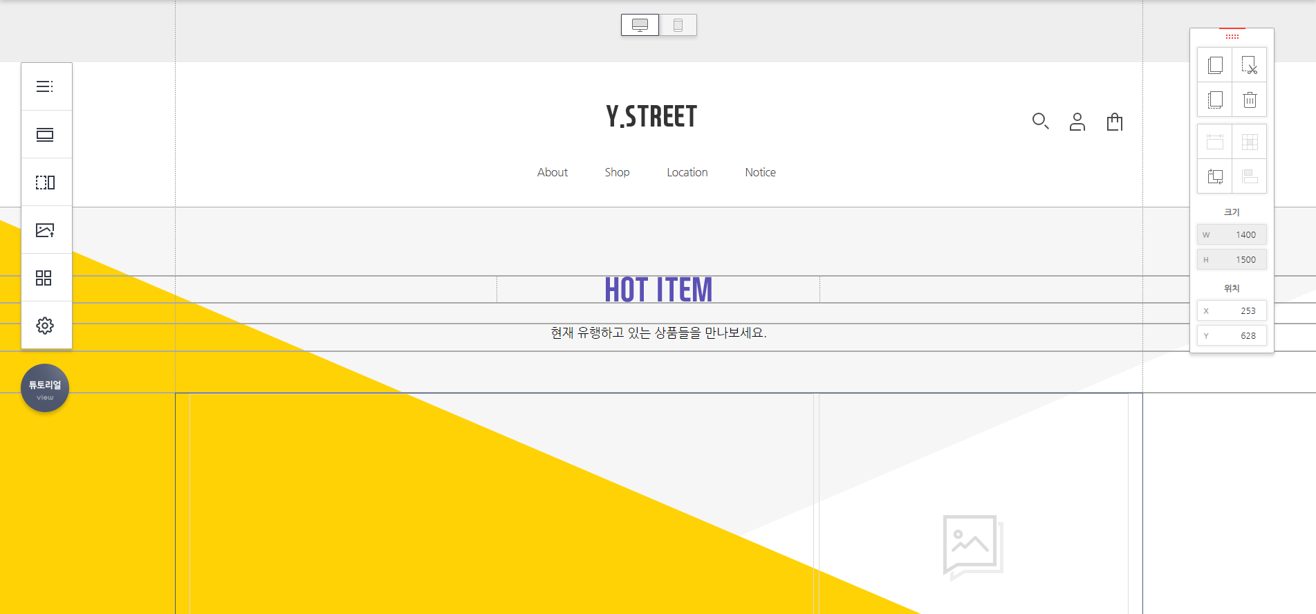 각 페이지별로 쉽게 내용을 변경할 수 있으며, 가장 큰 프레임을 먼저 바꾼 다음에 이미지를 교체할 수 있다. 디스플레이 부분과 상품이 업로드돼서 썸네일이 표시되는 부분을 잘 기억해둬야 한다. 마치, 비발디의 CSS 디버거를 사용한 것처럼 그리드가 쫙 그어져 있다. 그래서, 어떻게 디자인을 하고 넓이가 어떠한지 쉽게 확인할 수 있었다.